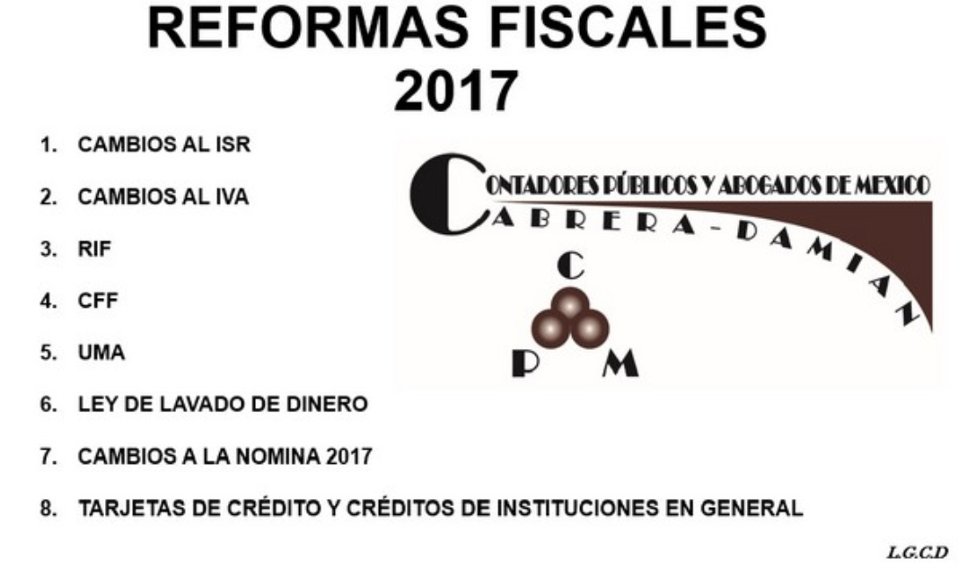 Con el propósito de dar a conocer las reformas fiscales 2017, el pasado 15 de febrero de 2017, en las instalaciones de plaza “San Carlos” en Bahías de Huatulco, el despacho Cabrera Damián Contadores Públicos y Abogados de México S.C. llevó a cabo una plática informativa a cargo del director general el C.P. Roberto Cabrera Trejo.
